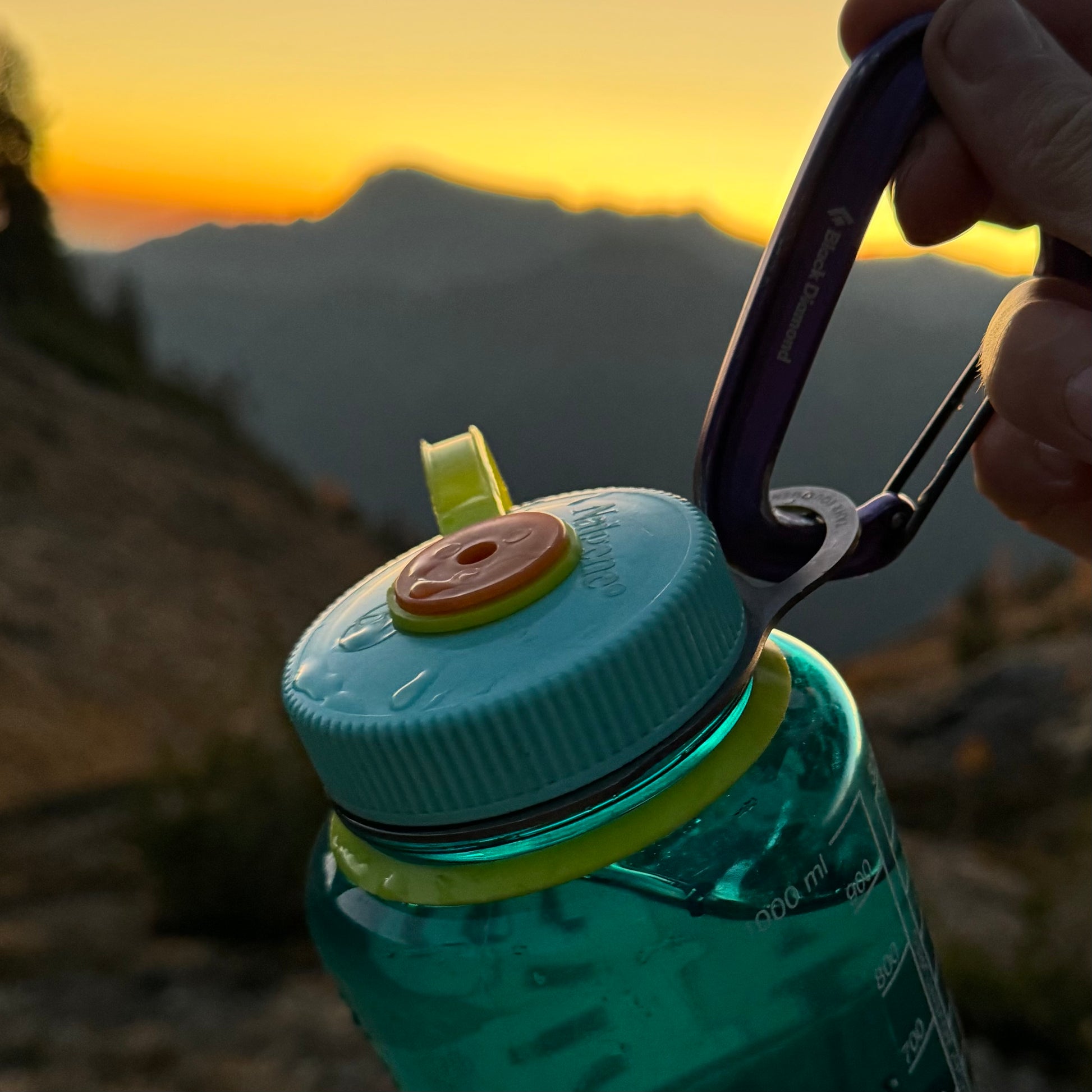 The CAP STRAP is a metal ring that screws through the threads of your water bottle. It seats just beneath the cap and provides a material advantage in durability and security. Unlike plastic alternatives, the CAP STRAP will never stretch, making it a dependable companion for both big wall climbs and everyday commutes.